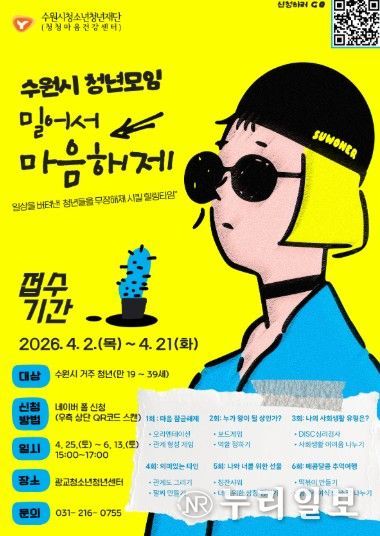 신청 기간은 오는 4월 2일부터 21일까지이며, 수원시에 거주하거나 활동하는 청년이라면 누구나 신청할 수 있다. 자세한 사항은 수원시청소년청년재단 홈페이지 또는 수원청년포털을 통해 확인할 수 있다.