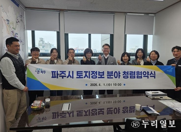 (누리일보) 파주시는 지난 1일 지적측량 수행기관인 한국국토정보공사 파주지사와 ‘토지정보 분야 청렴협의체’를 구성하는 내용으로 협약을 체결했다.