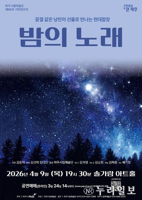 (누리일보) 파주시는 파주시립예술단 제85회 기획공연 '밤의 노래'을 오는 4월 9일 19시 30분 솔가람아트홀에서 개최한다.