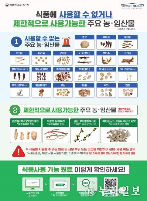 식약처는 안전성이 입증되지 않은 농·임산물 섭취로 인한 피해를 예방하기 위해 섭취 전 식품안전나라 누리집에서 식품으로 섭취할 수 있는 농·임산물의 종류 및 식용 가능 부위 등을 확인할 것을 당부했다.