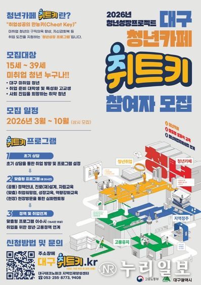 (누리일보) 대구광역시는 미취업 청년의 자신감 회복과 취업역량 강화를 통해 구직 의욕을 높이기 위한 ‘2026년 청년성장프로젝트(청년카페 취트키)’를 본격 시행한다.