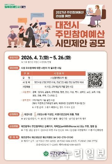 (누리일보) 대전시는 4월 7일부터 5월 26일까지 2027년도 주민참여예산 편성을 위한 시민제안 공모를 시작한다.