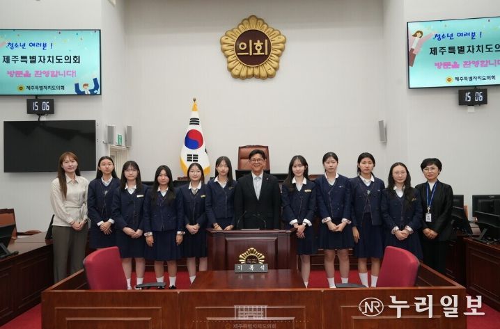 (누리일보) 제주특별자치도의회는 4월 7일 오후 3시, 본회의장에서 제주여자중학교 학생자치회 학생들과 함께 청소년의회 의정체험을 추진했다.