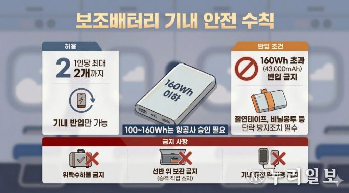 ◆ 보조배터리(Power bank) 반입은 2개까지, 기내 충전·사용은 전면 금지