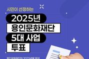 (누리일보) 용인문화재단은 1월 28일부터 2월 3일까지 시민참여를 통해 2025년 재단의 주요 사업을 선정하는 '시민이 선정하는 2025년 용인문화재단 5대 사업 온라인 투표를 진행한다. 이번 ‘용인문화재단 5대 사업’ 투표는 재단의 2025년 주요 성과사업 후보 13개 가운데시민이 직접 대표 사업을 선택하는 방식으로 운영된다. 참여자는 1인당 3개 사업까지 선택할 수 있으며, 득표 수가 높은 상위 5개 사업이 ‘용인문화재단 5대 사업’으로 선정된다. 주요 성과사업 후보는 ▲용인포은아트홀 리뉴얼 재개관 ▲용인포은아트홀 공연 경쟁력 강화 ▲생활권(처인구) 기획 공연 확산 ▲제2회 대한민국 대학연극제 ▲가을별빛콘서트 & 어텀라운지페스티벌 ▲조아용 시민 퍼레이드 ▲용인어린이상상의숲 ▲공생광장 문화예술 교육 ▲용인시민무용아카데미 ▲꿈의 극단 ‘용인’ ▲꿈의 오케스트라 ‘용인’ ▲용인문화예술공모 지원사업 ▲용인문화재단 장학사업 등 총 13개다. 투표는 온라인으로 진행되며, 용인문화재단 공식 홈페이지 또는 SNS 게시물 내 참여 링크를 통해 누구나 참여할 수 있다. 선정 결과는 재단 공식 SNS를 통해 발표될 예정이다. 재단은 투표