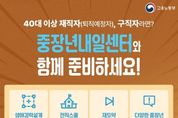 (누리일보) 40대 이상 재직자(퇴직예정자), 구직자라면? 중장년내일센터와 함께 준비하세요! - 생애경력설계 프로그램 : 직업역량, 가치관 분석 등 미래 경력 대안 탐색 지원 - 전직스쿨 프로그램 : 변화 관리 및 취업·전직 가능성 제시 - 재도약 프로그램 : 구직의욕 고취 및 구직 스킬 향상 지원 - 다양한 중장년 정책 안내 : 일경험, 지원금, 일자리 등 정보제공 · 비용 부담 ZERO! 전액 무료! · 간편한 온라인 신청 가능! 전국 38개 중장년내일센터로 오세용!