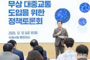 (누리일보) 수원특례시는 12일 시청 중회의실에서 ‘수원시 무상대중교통 도입 정책토론회’를 열고, ‘수원형 무상대중교통’ 도입 정책 방향을 공유했다. 이날 정책토론회는 주제 발표와 종합토론으로 진행됐다. 김채만 경기연구원 선임연구위원이 ‘미래 대중교통 정책방향-쿠리치바 대중교통 사례’, 김숙희 수원시정연구원 선임연구위원이 ‘수원시 무상대중교통 도입 방향’을 주제로 발표했다. 수원시는 사회초년생 청년과 어르신의 교통비 부담을 덜어주기 위해 내년 1월 1일부터 무상대중교통 지원사업을 시작한다. 지원 대상은 19~23세 청년, 70세 이상 어르신이다(신청일 기준). 19~23세 청년이 K-패스 교통카드로 대중교통을 이용하면 한 달에 최대 2만 3100원(연 27만 7200원)을 환급한다. 어르신은 농협에서 우대 교통카드(G-PASS)를 발급받아 사용하면 실제 사용 금액에 대해 분기별 최대 6만 9300원(연 27만 7200원 한도)를 지원한다. 종합토론에는 아주대학교 오영태 교수, 한국교통연구원 박준식 본부장, 경기대학교 김정화 교수, 경기도 광역교통정책과 윤태완 과장이 참여했다.