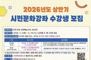 (누리일보) 광주시교육청금호평생교육관은 오는 3~6월 ‘2026년 상반기 시민문화강좌’를 운영한다. 이번 시민문화강좌는 시민의 학습 수요를 반영한 배움의 장을 제공하고 지역 내 평생학습 문화를 확산하기 위해 마련됐다. 강좌는 ▲스마트폰 활용 ▲영어회화 ▲컴퓨터 기초 등 인문교양 11개, ▲바이올린 ▲줌바댄스 ▲요가 ▲프랑스자수 등 문화예술 19개 등 2개 분야 30개로 구성됐다. 운영 일정은 오는 3월 3일부터 6월 24일까지 주 1회 2시간씩 총 16회에 걸쳐 본관 평생학습실에서 진행된다. 수강신청은 시민 누구나 가능하며, 선착순으로 접수받는다. 수강료는 강좌당 5만 원이다. 단, 장애인 등 수강료 감면대상자는 증빙서류 제출 시 1인 1강좌에 한해 감면 혜택을 받을 수 있다. 온라인 접수는 10~13일 금호평생교육관 누리집에서 가능하며, 방문접수는 오는 24~28일 금호평생교육관 운영과에서 하면 된다. 자세한 내용은 금호평생교육관 누리집 또는 운영과에서 확인하면 된다. 금호평생교육관 정운용 관장은 “시민들이 학습 욕구를 충족하고, 관심사를 넓히는 계기가 될 것
