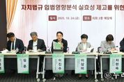 (누리일보) 경기도의회와 제주특별자치도의회는 10월 24일 금요일 오후 2시, 경기도의회 2층 예담채에서 '자치법규 입법영향분석 실효성 제고를 위한 토론회'를 공동 개최했다. 이번 토론회는 지방의회의 자치입법 역량을 강화하고, 자치법규의 실효성을 높이기 위한 목적으로 마련됐으며, 양 의회 사무처장, 국회입법조사처 및 지방의회 자치법규 관계자 등 50여 명이 참석하여 열띤 논의를 펼쳤다. 주제발표로는 아주대학교 공공정책대학원 이진수 박사가 자치법규 입법영향분석 평가기준 개선방안에 대해 발표했다. 이어 한국법제연구원 차현숙 혁신법제본부장이 제주의 입법평가 사례를 바탕으로 입법평가의 실효성 확보 방안을, 김준 전 국회입법조사처 실장이 법률 입법영향분석 기준에 대해 각각 발표를 이어갔다. 사례발표로는 경기도의회 김홍 입법조사관이 도의회 사후입법영향평가 현황과 과제를, 국회입법조사처 이동영 입법조사관이 국회입법조사처 입법영향분석 사례를 소개했다. 이후 경복대학교 복지행정학과 이상미 교수를 좌장으로 한 자치법규 입법영향분석 제도의 실효성을 높이기 위한 종합토론이 진행됐다. 경기도의회