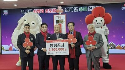 (누리일보) 양평군은 지난 11일 양평군청 별관 4층 대회의실에서 ‘희망2026 나눔캠페인 사랑의 온도탑 제막 및 성금 전달식’을 개최했다고 밝혔다. 이날 행사에는 전진선 양평군수, 김효진 경기사회복지공동모금회 사무처장, 이경학 지역사회보장협의체 공동위원장 등 200여 명이 참석했으며, 지역주민과 기업, 기관·단체 등 87개소가 참여해 총 1억 8,700만 원 상당의 성금과 물품을 기탁하며 이웃사랑 실천에 동참했다. 양평군의 ‘희망2026 나눔캠페인 사랑의 온도탑’ 목표액은 2억 원으로, 목표액의 1%가 모일 때마다 온도가 1℃씩 상승해 100℃ 달성을 목표로 하고 있다. 이날 기준 양평군 사랑의 온도는 94℃를 기록하며 군민들의 적극적인 참여 열기를 보여줬다. 전진선 양평군수는 “경기 침체로 모두가 어려운 시기지만, 오늘 모아주시는 정성이 소외된 이웃들에게 큰 온기가 될 것”이라며 “11년 연속 복지업무 대상 수상은 군민들의 관심과 참여로 함께 만든 성과”라며 감사의 마음을 전했다. 김효진 사무처장은 “양평은 전국 어느 지역보다 기부문화가 활발하며, 올해는 아너소사이어티 동시 가입 등 나눔이 더욱