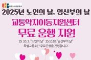 (누리일보) 파주도시관광공사 교통약자이동지원센터는 10월 2일 “노인의 날”과 10월 10일 “임산부의 날”을 맞이하여 특별교통수단 무료 운행 서비스를 진행한다고 밝혔다. “노인의 날”은 센터에 등록된 이용자 중 만 65세 이상을 대상으로 하며, “임산부의 날”은 센터에 등록된 임산부를 대상으로 무료 운행을 지원한다. 이용 방법은 기존 배차 접수 방식과 동일하며, 해당 기념일인 00:00~24:00에 콜센터에 접수된 배차건에 한하여 무료로 이용할 수 있다. 공사 조동칠 사장은 “교통약자이동지원 서비스는 단순한 교통수단 제공을 넘어 사회적 가치 실현에 기여하고 있다”며, “앞으로도 다양한 기념일을 연계한 사회공헌 활동을 추진해 교통약자의 권익 증진과 행복하고 안전한 이동 환경 조성에 힘쓸 계획이다.”라고 전했다.