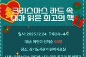 (누리일보) 김포시 장기도서관은 '크리스마스 카드 속 내가 읽은 최고의 책'을 12월 24일 오후 2시부터 4시까지 어린이 자료실에서 선착순 60명을 대상으로 운영한다. '크리스마스카드 속 내가 읽은 최고의 책'은 장기도서관 사서들이 직접 운영하는 프로그램으로 어린이들이 카드에 1년간 읽은 책 중 가장 좋았던 책의 제목과 이유를 쓰고 엄마 아빠에게도 하고 싶은 말을 써서 크리스마스 양말 카드 봉투에 담아 보는 활동이다. ‘2025년 대한민국 독서대전 김포’를 통해 많은 어린이가 장기도서관에서 방문해 책을 읽고, 어린이 특별 프로그램을 수강했다. 이번 행사는 연말 책 읽기를 권장하고, 비독자인 어린이가 독자로 도서관을 즐겁게 방문하여 다양한 활동을 할 수 있도록 진행할 예정이다.