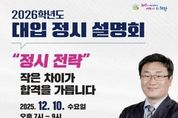(누리일보) 의왕시가 12월 10일 저녁 7시부터 오전커뮤니티센터 5층 강당에서 ‘2026학년도 대입 정시 지원전략 설명회’를 개최한다. 이번 설명회는 대입 수험생과 학부모 200여 명을 대상으로 진행되며, 대입 정시 합격을 위한 실질적인 전략을 제공할 예정이다. 설명회에서는 이투스 진로진학센터 박중서 센터장이 강연자로 나서 2026학년도 수능 결과와 과목별 성적 추이에 따른 입시 결과, 주요 대학별 정시모집 요강 등 다양한 정보를 다룰 예정이다. 특히, 정시모집 가·나·다군 별 합격 지원전략을 제시해 수험생들이 보다 구체적인 계획을 세울 수 있도록 도울 예정이다. 참가 신청은 11월 25일부터 의왕시 통합예약시스템 홈페이지에서 선착순으로 진행되며, 설명회 참석자에게는 2026학년도 정시 지원전략 자료집과 가·나·다군 배치표가 무료로 제공된다. 김은영 평생교육과장은 “지난해와 올해 대입 수시설명회에서 현장반응이 좋고 강사 만족도가 매우 높았던 입시전문가를 재초빙했다”면서 “이번 설명회가 수험생들이 수능 성적을 바탕으로 정확한 합격 전략을 세우는 데 실질적인 도움이 될 것으로 기대한다”고