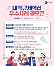 (누리일보) 교육부는 10월 28일부터 11월 20일(목)까지 대학을 대상으로 ‘2025년 대학규제혁신 우수사례’를 공모한다. 그간 교육부는 ▴대학 교원 제도의 유연성 확대(전임교원 교수시간 자율 운영 등), ▴학사 운영의 자율성 향상(소단위 전공과정 및 전공자율선택 운영 등), ▴운영 중인 대학에 대한 설립·운영 기준 완화를 통한 학과 개편 지원, ▴첨단산업 분야 인재 양성을 위한 학생 정원 확대 등 대학의 자율적 혁신을 지원해 왔다. 이번 공모전은 대학규제혁신으로 개선된 제도를 대학에 적용한 혁신적인 사례를 찾고, 이러한 사례들을 타 대학에 전파하고 공유하기 위해 마련되었다. 동 공모전은 ’24년부터 시작되었으며, 작년에는 울산대학교의 ‘지역 내 멀티캠퍼스 구축 및 운영’, 부산외국어대학교의 ‘전공자율선택제 전면 시행’, 경상국립대학교의 ‘소단위 전공 과정 근거 마련’이 대상과 우수상을 수상한 바 있다. 올해 공모전에는 현장에서 규제 개선의 효과를 체감하는 데 시간이 소요될 수 있음을 감안하여, 계획 수립 단계부터 현재 추진 중인 혁신 사례도 응모할 수 있도록 하였다. 1단계 전문가