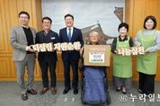 (누리일보) 전북특별자치도의회는 18일 의장실에서 하나예술창작센터의 장애인 예술 창작활동 지원과 노후 시설 보완 등에 활용해 달라며 기부물품 바자회 수익금 330만 원을 전달했다. 이번 전달식은 지난달 21일 도의회 현관 앞에서 전북특별자치도의회와 아름다운가게 전북본부가 함께 의원 및 사무처 직원들의 물품을 기부받아 진행한 바자회 판매 수익금을 모아 소외된 이웃을 돕기 위해 마련됐다. 문승우 의장은 “의원들과 직원들이 기부한 물품이 다시 지역사회에 따뜻한 나눔으로 돌아간다는 점에서 의미가 크며, 자원순환 캠페인에도 함께 동참할 수 있어 더욱 뜻깊다”며, “행사에 참여해 주신 의원님들과 직원분들게 감사드리며 앞으로도 도민과 함께하는 사회공헌 활동을 이어가겠다”고 말했다. 수익금을 전달받은 전해진 센터장은 “도의회의 따뜻한 나눔이 어려운 이웃에게 큰 힘이 될 것”이라며 “전달된 기금은 장애인 예술가들의 창작활동에 필요한 물품 지원과 노후 장비 보완에 소중하게 사용하겠다.”고 말했다.