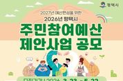 (누리일보) 평택시가 3월 23일부터 5월 22일까지 2027년도 예산 편성을 위한 2026년도 주민참여예산 제안사업 공모를 시행한다. 주민참여예산 제도는 예산 편성 등 예산 전 과정에 주민의 참여를 확대해 예산 운영의 투명성과 민주성을 높이기 위한 제도다. 평택시는 2026년 주민참여예산 제안사업으로 접수된 611건 가운데 171건, 약 31억 원 규모의 사업을 예산에 반영했다. 2026년도 주민참여예산 운영 규모는 56억 원이며, 공모 분야는 ▲평택시 전반의 현안 해소와 시민 편익 증진을 위한 시 일반제안사업 ▲읍면동 지역 문제 해결을 위한 읍면동 일반제안사업 ▲읍면동 주민자치회가 사업의 기획부터 실행까지 주도적으로 참여하는 주민자치회 제안사업 등 3개 분야로 운영된다. 제안을 희망하는 주민은 제안서를 작성해 평택시청 더나은평택(주민참여예산 ' 주민참여예산 제안하기)을 통해 제출하거나, 평택시청 자치행정협치과 및 읍면동 행정복지센터로 방문, 우편, 이메일로 접수할 수 있다. 아울러 ‘찾아가는 주민참여예산학교’와 ‘주민참여예산 제안발굴 컨설팅’등을 통해 관련 교육과 컨설팅도 지원받을 수 있다. 제