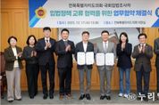 (누리일보) 전북특별자치도의회는 17일 국회입법조사처와 입법정책 분야의 상호 교류 및 협력을 위한 업무협약(MOU)을 체결했다. 문 의장을 비롯한 이명연·김희수 부의장, 서난이 대변인, 이관후 국회입법조사처장 등이 참석한 가운데 진행된 이날 협약은 지방의회의 입법·정책 조사분석 능력을 높여 지역 현안에 대한 대응력을 강화하기 위해 마련됐다. 협약 기간은 2년이다. 양 기관은 상호 이해와 신뢰를 바탕으로 ▲지역 발전을 위한 입법정책 자문 및 간담회 개최 ▲연구보고서 및 정책자료 공유 ▲지방분권·지역균형발전 관련 공동연구 ▲지방의회 입법정책 역량 강화 사업 등을 함께 추진하기로 합의했다. 전북특별자치도의회는 이번 협약에 따라 입법정책 역량을 한층 강화하고, 의정 전문성 제고를 위한 협력 기반을 지속적으로 확대해 나갈 방침이다. 문승우 의장은 “지방정부의 입법 역량이 어느 때보다 중요한 시기에, 중앙의 입법 연구기관과 긴밀한 협력 체계를 구축하게 되어 매우 뜻깊게 생각한다”며 “이번 업무협약을 계기로 양 기관이 지속적으로 교류하고 협력하여 도민에게 실질적으로 도움이 되는 입법정책을 만들 수 있도록 모든