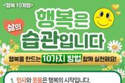 (누리일보) 2005년 영국의 소도시인 슬라우(Slough)시는 주민을 대상으로 "행복은 정말 바꿀 수 없는 걸까?"라는 질문에서 출발한 사회 실험을 약 12주간 진행했다. 주민들이 감사하기, 웃기, 운동하기, 친절 베풀기처럼 평범하지만 의식적인 행동을 생활 속에서 실천한 것이다. 그 결과 참여자의 행복도가 약 30% 이상 높아졌다. 기후에너지환경부도 이 같은 실험을 조직 내에서 실천하기로 했다. 조직의 행복이 정책 성과로 이어질 수 있을지 흥미로운 시도를 펼치는 것이다. 기후에너지환경부는 3월 6일부터 조직 내 협업과 배려 문화를 확산한 직원을 매주 ‘행복전도사’로 선정하고 해당 부서에 소규모 간식(행복피자)을 제공하는 ‘행복한판’ 프로그램을 시행한다고 밝혔다. ‘행복한판'은 조직 내 협업·배려·감사·웃음 등으로 행복을 확산한 직원을 다른 직원에게 추천받아 행복전도사로 선정해 포상한다. 선정된 직원에게는 소정의 상품과 그 직원이 속한 부서에 간식이 제공된다. 이에 앞서 기후에너지환경부는 2월 9일부터 직원들을 대상으로 ‘행복은 삶의 습관입니다’를 주제로 행복 10계명 실천 운동을 펼치고 있다. 행