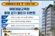 (누리일보) 해양경찰교육원은 교육원 여수 준공 12주년을 기념해 오는 3월 1일부터 31일까지 한 달간, 여수 시민과 함께하는 비대면 걷기 행사 '해양경찰교육원 동행 걷기 챌린지'를 운영한다. 이번 챌린지는 GPS 기반 모바일 앱‘워크온(WalkOn)’을 활용한 비대면 방식으로, 참가자들은 각자의 일상 속에서 자유롭게 걷기에 참여할 수 있다. 여수 지역 거주자와 교육원 교직원·교육생이라면 누구나 참여 가능하며, GPS인증을 통해 여수 지역 내 걸음수가 인정된다. 참여자는 행사 기간 동안 12만보(1일 최대 1만보)를 달성하여 응모할 수 있다. 목표 달성자 중 총 12명을 선발해 기념품을 증정하며, 희망자에 한해 교육원 방문 견학 기회도 제공한다. 특히 이번 행사에서는 최신 베이커리 트렌드인 두바이쫀득쿠키(일명 ‘두쫀쿠’)를 여수 지역 소상공인을 통해 우선 구매해 지역 경제 활성화에도 기여할 예정이다. 교육원 관계자는 “함께 걷는 건강한 활동을 통해 시민과 소통하고, 국민 곁을 지키는 해양경찰의 역할과 가치를 자연스럽게 알리고자 이번 행사를 마련했다”며 많은 관심과 참여를 바란다고 전했다.
