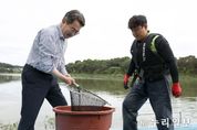 (누리일보) 김동연 지사가 이번에는 달달투어 도중 ‘한탄강 청년어부’를 만났다. 바다에서 하는 어업 외에 내수면어업(육지의 하천, 호수 같은 담수에서 이뤄지는 어업)을 지원하겠다는 메시지였다. ‘한탄강 청년어부’는 구독자 17만 명을 자랑하는 유튜브 채널 이름이자 운영자인 1988년생 김은범씨의 닉네임이기도 하다. 오늘 김 지사는 임진강(임진강은 한탄강과 같은 줄기) 수위 점검을 한 뒤 조업을 마치고 돌아온 한탄강 청년어부의 고깃배 ‘왕건1호’에 성큼 올라섰다. 청년어부가 활어통 뚜껑을 열어 갓 잡아온 물고기를 뜰채로 들어올려 김 지사에게 보여줬다. 만선까지는 아니어도 활어통에는 물고기가 가득 담겨 있었다. 메기,쏘가리, 장어, 빠가사리 등도 보였다. 청년어부 김은범씨가 또 한 개의 활어통을 열자 참게가 그득했다. 김 지사는 청년어부와 함께 어획한 참게를 자동차로 옮겨 실었다. 청년어부 김은범 씨는 한탄강(또는 임진강)에서 직접 잡은 물고기로 밀키트를 제작해 온라인 판매하고 있다. 전국에서 민물고기로 밀키트를 만든 것은 그가 처음이라고 한다. 한탄강 어획물로 다양한 가공식