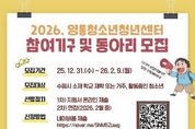 (누리일보) 수원시청소년청년재단 영통청소년청년센터가 2026년 활동에 함께할 청소년 참여기구 및 동아리 참가자를 모집한다. 모집 대상은 청소년운영위원회, 놀이동아리, 문화예술동아리연합 총 3개 분야이며, 선발 인원은 약 100명이다. ▲청소년운영위원회는 기관 운영 전반에 대해 청소년이 직접 의견을 제안하는 활동으로, 청소년의 주도성과 참여를 강화한다. ▲놀이동아리는 공동체 기반 놀이를 통해 건강한 또래 관계를 형성하고, ▲문화예술동아리연합은 댄스·밴드 등 다양한 장르에서 청소년의 문화예술 역량을 강화하는 동아리이다. 참여기구 및 동아리는 2026년 한 해 동안 진행되며, 센터의 주요 사업과 연계된 다양한 프로젝트에 참여하게 된다. 참여기구 및 동아리 모집 기간은 2026년 2월 9일까지이며, 신청은 홍보물 내 QR코드를 통해 온라인 신청서(네이버폼)를 작성해 제출하면 된다. 선발된 청소년들은 다양한 프로그램을 주도적으로 운영하게 된다. 영통청소년청년센터 관계자는“참여기구 및 동아리 활동은 청소년이 단순 참여자가 아닌, 스스로 활동을 만들어가는 주체로 성장할 수 있는 기회”라며 “다양한 관심과 열정을 가진 청소년