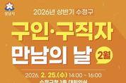 (누리일보) 성남시는 시민의 취업을 지원하고 지역 기업의 인력난 해소를 위해 오는 2월 25일 오후 2시부터 4시까지 수정구청 1층 대회의실에서 ‘구인·구직자 만남의 날’ 행사를 연다. 이번 행사에는 12개 기업이 참여해 다양한 직종을 대상으로 구직자와 1대1 현장 면접을 진행하며, 총 55명을 채용할 예정이다. 참여 기업과 채용 직종은 △㈜현대에쓰앤에쓰(생산) △㈜케어마스터(객실관리, 미화) △노무법인 더보상 법률원(영업) △프리미안데이케어(요양보호사) △하이머시닝㈜(MCT 가공·조작) △㈜아람인테크(조리원) △케이엔자산관리㈜(보안) △공정노무법인(법률사무원 외근) △㈜대원버스(승무사원) △이엠플러스(생산, 자재관리) △파네트리(판매, 생산) △분당센트럴요양병원(조리)이다. 구직자는 이력서 등 구비서류를 지참해 행사 당일 현장을 방문하면 희망 기업의 부스에서 순서에 따라 면접에 참여할 수 있다. 시는 현장 면접과 함께 1대1 취업 컨설팅, 지문 적성 검사, 이력서 사진 무료 촬영 등 다양한 부대행사도 운영해 구직자의 취업 준비를 지원할 계획이다.