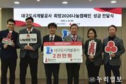 (누리일보) 대구도시개발공사는 1월 13일 사회복지공동모금회가 주관하는 ‘희망2026나눔캠페인’에 성금 2,000만 원을 기탁했다고 밝혔다. ‘희망2026나눔캠페인’은 사랑의열매가 연말연시를 맞아 매년 추진하는 대표적인 모금 행사로, 지역사회 내 어려운 이웃을 돕기 위한 범국민 나눔 캠페인이다. 이번 캠페인을 통해 모금된 성금은 저소득층의 생계비 및 의료비 지원을 비롯해 재해·재난 피해 지원, 긴급복지 지원 등 다양한 복지사업의 재원으로 활용될 예정이다. 한편, 대구도시개발공사는 올해에도 임직원 급여 일부를 매월 정기 기부하는 사랑의열매 ‘착한일터’ 캠페인에 참여하는 등 지역 취약계층 복지 향상과 사회적 가치 실현에 지속적으로 동참할 계획이다. 정명섭 대구도시개발공사 사장은 “연말연시를 맞아 지역 이웃을 위해 나눔을 실천할 수 있어 매우 뜻깊다”며 “앞으로도 대구를 대표하는 지방공기업으로서 지역사회 발전과 상생을 위한 나눔 활동을 꾸준히 실천해 나가겠다”고 말했다.