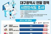 (누리일보) 대구광역시는 지난해 11월 27일부터 12월 3일까지 만 18세 이상 대구시민 1,001명을 대상으로 시정 전반에 대한 ‘시민인식도 조사’를 실시했다. 이번 조사는 시민들의 다양한 의견을 파악해 향후 시정 운영과 주요 정책 수립에 활용하기 위한 것으로, ▲대구시 거주 만족도 ▲대구시가 역점 추진해야 할 분야 및 핵심사업 우선순위 ▲재정운영 대책 ▲시정 성과 만족도 등을 중심으로 조사했다. 주요 결과는 다음과 같다. 먼저, 대구시 거주 만족도와 관련해 교통, 교육, 생활물가, 거주여건, 경제여건, 문화체육관광 여건, 생활환경 등 시민 삶의 질과 관련된 7개 분야 만족도를 조사한 결과, 교통여건(87.6%), 생활환경(81.8%), 거주여건(79.5%) 등은 높은 만족도를 보였다. 반면 경제여건은 불만족 비율이 62.9%로, 조사 항목 중 유일하게 부정응답이 많았다. 이는 시민들이 일상생활 인프라에 대해서는 전반적으로 만족하고 있지만, 경제 상황은 어렵다고 인식하는 이중적 구조를 보여주고 있다. 다음으로, 향후 역점 추진분야 및 핵심사업에서는 대구시가 가장 역점적