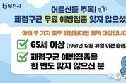 (누리일보) 부천시는 폐렴으로 인한 중증 질환과 합병증을 예방하기 위해 65세 이상 어르신을 대상으로 폐렴구균 예방접종 참여를 당부하고 있다. 폐렴구균은 세균성 폐렴의 주요 원인균으로 전체 세균성 폐렴의 40% 이상을 차지하며, 균혈증과 뇌수막염 등 중증 감염을 유발할 수 있어 고령층의 각별한 주의가 필요하다. 이에 따라 예방접종을 통한 사전 예방의 중요성이 강조되고 있다. 국가예방접종사업에 따라 65세 이상 어르신 중 폐렴구균 예방접종을 받지 않은 대상자는 무료 접종이 가능하며, 주민등록번호 기준 1961년 12월 31일 이전 출생자가 해당된다. 접종 백신은 폐렴구균 23가 다당백신(PPSV23)으로, 평생 1회 무료 접종을 지원한다. 예방접종은 주소지와 관계없이 가까운 지정 의료기관 또는 보건소에서 받을 수 있으며, 방문 전 예방접종도우미 누리집이나 의료기관에 문의해 접종 가능 여부를 확인해야 한다. 송정원 부천시 보건소장은 “폐렴구균 감염은 고령층에서 중증으로 진행될 위험이 높은 만큼, 미접종 어르신은 예방접종을 완료해 주시길 바란다”며 “건강한 노후를 위해 예방접종에 적극 참여해