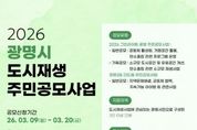 (누리일보) 광명시가 오는 20일까지 주민이 스스로 마을 문제를 해결하고 공동체 활성화를 이끌어갈 ‘2026년 도시재생 주민공모사업’ 참여단체를 모집한다. 이번 공모사업은 광명시 전역을 대상으로 하는 ‘그린라이트 광명 주민공모사업’과 광명3동 더드림 도시재생활성화지역을 대상으로 하는 ‘광명3동 더드림 주민공모사업’ 두 가지 유형으로 운영한다. ‘그린라이트 광명 주민공모사업’은 일반공모 2팀과 기획공모 1팀을 선정해 공동체 활성화, 탄소중립 프로그램 운영, 소규모 도시공간 개선 등 주민 아이디어를 사업으로 발전시키는 활동을 지원한다. 일반공모팀은 팀당 최대 500만 원, 기획공모팀은 팀당 최대 1천만 원을 지원한다. ‘광명3동 더드림 주민공모사업’은 광명3동 도시재생 활성화지역의 마을 문제 해결과 공동체 협력 프로그램 등을 주제로 공모를 진행한다. 4팀을 선정하며 팀당 최대 500만 원을 지원한다. 시는 주민공모사업 이해를 돕기 위해 오는 12일 오후 3시 광명3동 어울리기 문화발전소(광명동 126-31)에서 사업설명회를 개최한다. 또한 사업 성과 확산을 위해 사전 컨설팅도