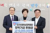 (누리일보) 대구시교육청은 12월 4일, 대한기계설비건설협회 대구광역시회(회장 이민균)에서 대구인재육성장학재단에 장학금 1천만 원을 기탁했다고 밝혔다. 대한기계설비건설협회 대구광역시회는 힘든 여건 속에서도 꿈을 실현하기 위해 노력하는 학생들에게 도움을 주고자 협회 회원사들이 뜻을 모아 2023년부터 매년 장학금을 기탁해 오고 있다. 이민균 회장은 “어려운 환경에서도 학생들이 재능을 키워나갈 수 있도록 지원하는데 보탬이 되길 바란다.”는 뜻을 전했다. 강은희 교육감은 “건설경기 침체에도 불구하고 꾸준히 학생들을 위해 장학금을 기탁해주셔서 감사드리며, 지역 인재육성을 위해 최선을 다하겠다.”고 말했다.