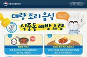 (누리일보) ■ 대량 조리 음식 식중독 예방요령 ① 완전히 익히기 육류 중심온도 75°C(어패류 85°C) 1분 이상 가열하기 ② 조리된 음식 즉시 제공하기 조리된 상태로 상온에 방치되지 않도록 조리 후 즉시 제공하기 ③ 가열 조리 후 신속히 냉각하기 가열 조리 후 즉시 섭취하지 않을 시, 여러 용기로 나누어 담거나 신속히 냉각하기 ④ 보관온도 유지하기 따뜻한 음식은 60°C 이상, 차가운 음식은 5°C 이하로 보관하기 ⑤ 재가열하여 섭취하기 보관된 음식 섭취 시, 충분히 가열 후 섭취하기 ■ 운반 시 식중독 예방 요령 · 차량·운반기구 청결히 관리하기 - 오염되기 쉬운 곳 세척·소독하고 청결 상태 수시로 확인하기 · 운반 시 음식 온도 관리 주의 - 따뜻한 음식과 차가운 음식이 서로 닿지 않게 구분하기 · 안전하게 포장하기 - 음식이 새거나 오염되지 않도록 완전히 밀폐되게 포장하기 · 운반 후 즉시 제공하기 - 음식 운반이 완료되면 즉시 제공하기