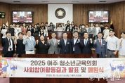 (누리일보) 경기도여주교육지원청은 10월 15일, 여주시의회 본회의장에서 '2025 여주 청소년교육의회 발표회 및 폐원식'을 개최했다. 이번 행사는 지난 6개월 동안 여주 청소년들이 직접 기획·참여한 사회참여활동 결과를 공유하고, 의정활동을 마무리하는 자리로 마련됐다. 이날 행사에는 김상성 교육장을 비롯해 박두형 여주시의회 의장과 여섯 명의 시의원, 청소년교육의회 의원 36명 및 학부모가 참석해 청소년들의 성장과 노력을 함께 축하했다. 여주교육지원청 김상성 교육장은 격려사에서 “청소년의 목소리가 지역사회를 변화시키는 힘이 된다”며 “여러분의 작은 실천이 여주의 미래를 밝히는 등불이 되기를 바란다”고 전했다. 또한 박두형 여주시의회 의장은 “여주시의회도 여러분의 제안을 귀 기울여 듣고, 청소년이 행복한 도시를 만드는 데 함께하겠다”고 격려했다. 이날 발표회에서는 청소년의회 5개 상임위원회(환경·복지·인성·시설·교육)가 각 분과별로 진행한 사회참여활동과 정책제안서를 공유했다. 환경위원회는 ‘지속 가능한 여주를 위한 생활 속 실천 방안’을, 복지위원회는 ‘보행자 안전을 위한 정책