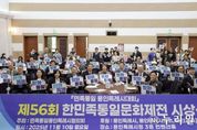 (누리일보) 용인특례시는 10일 시청 컨벤션홀에서 민족통일 용인특례시협의회 주관으로 ‘민족통일 용인특례시대회와 제56회 한민족통일문화제전 시상식’이 열렸다고 밝혔다. 이날 행사는 한반도의 평화와 통일을 주제로 한 글짓기·웹툰·포스터·사진 공모전의 입상작을 시상하고, 유공회원에게 표창을 수여하고자 마련됐다. 민족통일 용인특례시협의회는 1981년 창립한 단체로 매년 태극기 나눔을 비롯해 지역사회 통일운동 의식 제고 등을 위한 다양한 활동을 벌이고 있다. 이날 협의회는 홍보자료 시청, 통일 관련 동영상과 남북 언어 차이에 대한 학습자료를 시청하고 간단한 통일 퀴즈대회를 거쳐 우수 작품 3개를 낭독했다. 이어진 시상식에서는 용인특례시장상 3명 등 총 36명이 수상의 영예를 안았다. 유한종 민족통일 용인특례시협의회장은 “민족의 염원인 한반도 평화통일을 위해 어려운 여건 속에서도 적극 지원해 주시는 이상일 시장님께 감사드린다”며 “대한민국 통일의 그 날이 올 때까지 협의회 회원의 뜻을 한데 모아 더욱 적극 활동하겠다”고 했다. 이상일 시장은 “대한민국이 한국전쟁의 비극을 이겨내고, 선