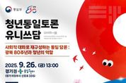 (누리일보) 통일부는 9월 26일 13시, 경기권 통일플러스센터(의정부시 소재)에서 다양한 관점을 가진 청년 70여 명이 모여 ‘광복 80주년과 청년의 역할’을 주제로 '제3차 청년 대상 합의 형성 토론회'를 개최한다. 광복 80주년을 기념하여 개최되는 본 토론회에서는 통일 미래세대인 청년들이 평화·통일에 대해 적극적으로 의견을 주고받으며, 많은 사람들이 공감할 수 있는 통일 담론을 그려나가는 시간을 갖고자 한다. 분임토론에서는 ‘역사의 주체’이자 ‘미래의 설계자’인 청년의 관점에서 통일의 필요성에 대해 이야기를 나누어보고, 미래에 맞이할 광복 100주년의 모습도 자유롭게 그려볼 예정이다. 통일부는 경기권 통일플러스센터에서 개최되는 첫 행사인 본 토론회를 계기로, 경기 센터가 ‘통일행정의 종합 플랫폼’이자 지역 주민과 함께 한반도 평화의 비전을 실현해 나가는 공간으로 발전해 나가길 기대한다. 또한 통일부는 앞으로도 청년들의 통일·대북 정책에 대한 다양한 의견을 수렴하며 지속 가능한 평화·통일정책을 수립하고 추진해 나갈 것이다.