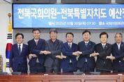 (누리일보) 전북특별자치도가 30일 서울 국회의원회관에서 지역 국회의원 및 연고 국회의원 예산정책협의회를 연이어 개최했다. 2026년도 국가예산 국회단계 증액 확보를 위한 전방위 공조 체제를 본격 가동한 것이다. 오전 지역 국회의원 협의회와 정오 연고 국회의원 협의회로 나뉘어 진행된 이번 회의에서 김관영 지사는 도정 주요현안과 부처별 건의사업을 공유했다. 전북 지역 국회의원 예산정책협의회에서는 국회단계 증액이 필요한 주요사업의 역할분담을 모색했다. 효과적인 반영 전략을 수립하기 위해서다. 도는 올해 정부안 9조 4,585억 원을 확보했다. 하지만 새만금·AI·문화·복지 등 핵심 분야에서 과소·미반영된 70대 중점사업의 국회단계 반영 필요성을 강조했다. 특히 ▲국립모두예술콤플렉스 건립 ▲AI 융합 영화·영상 실증지원센터 건립 ▲협업지능 피지컬AI 기반 SW플랫폼 조성 ▲국립 의용소방대 연수원 건립 ▲새만금 국가정원 조성 ▲국립익산식품박물관 건립 ▲동물의약품 임상시험센터 구축 ▲기초연구인프라 연구시설 구축 ▲AI 기반 차세대 엑소좀 기술 및 표준화 개발 ▲전북 혁신도시 종합사회복지관 건립 등 지역구별
