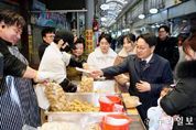 (누리일보) 강기정 광주광역시장은 설 명절을 앞두고 11일 전통시장을 찾아 민생 현장을 살폈다. 강기정 시장은 이날 북구 말바우시장을 방문해 고물가와 소비 위축으로 어려움을 겪고 있는 상인들을 격려하고, 시장을 찾은 시민들과 소통하는 시간을 가졌다. 강 시장은 점포 곳곳을 돌며 온누리상품권으로 한과 등 제수용품을 구입하며, 명절을 앞둔 장바구니 물가를 세심하게 점검했다. 상인들과는 최근 매출 동향과 체감 경기, 물가 부담 등에 대해 의견을 나눴다. 시장 상인들은 “명절 대목에도 소비심리가 예전 같지 않다”며 현장의 어려움을 전했다. 강 시장은 시민들과도 일일이 인사를 나누며 덕담을 건네고, 광주전남 행정통합 등 지역 현안에 대한 시민들의 생각을 경청했다. 강 시장은 “설 명절을 앞둔 전통시장은 지역 경제의 흐름과 시민들의 체감경기를 가장 가까이에서 확인할 수 있는 곳”이라며 “오늘 현장에서 들은 상인과 시민들의 목소리를 시정에 충실히 반영해 전통시장과 소상공인이 실제로 체감할 수 있는 지원 정책을 이어가겠다”고 말했다. 강 시장은 또 “어려운 여건 속에서도 전통시장을 지켜오