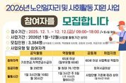 (누리일보) 광명시가 어르신의 건강한 노후와 사회참여 확대를 위해 노인 일자리 참여 기회를 넓힌다. 시는 오는 12월 1일부터 12일까지 ‘2026년 노인일자리 및 사회활동 지원사업’ 참여자 3천384명을 모집한다. 내년도 사업 예산은 전년보다 1억 7천400만 원이 늘어난 162억 원이 편성됐다. 이번 사업은 ▲노인 공익 활동 ▲노인 역량 활용 ▲공동체 사업단 ▲취업 지원형 등 네 가지 유형으로 운영한다. 노인공익활동은 65세 이상 기초·직역연금 대상 어르신이 지역 환경정비, 공공시설 지원 등 공익 활동에 참여하는 사업이다. 노인역량활용은 돌봄·안전 등 도움이 필요한 가정이나 시설에 서비스를 제공하는 역할을 맡으며, 공동체 사업단은 60세 이상 어르신이 소규모 매장 운영 또는 전문사업단 활동으로 경제활동을 이어갈 수 있도록 지원한다. 취업지원형은 구인 기업과 어르신을 직접 연계해 민간 분야에서 일자리를 찾을 수 있도록 돕는다. 참여를 원하는 어르신은 주소지 동 행정복지센터 또는 7개 수행기관(광명시니어클럽, 대한노인회 광명시지회, 소하노인종합복지관, 하안노인종
