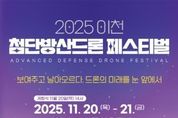 (누리일보) 이천시는 ‘이천의 하늘이 바뀌면, 대한민국의 산업 지도가 바뀔 것’이라는 비전을 가지고 드론페스티벌을 연다. 이천시는 오는 11월 20일부터 21일까지 이틀간, 부발읍 종합운동장(무촌리 52) 일원에서 ‘2025 이천 첨단방산드론 페스티벌’을 개최한다. 개막식은 11월 20일 14:00로 드론의 미래를 보는 첫걸음을 내딛을 예정이다. ‘보여주고, 날아오르다 – 드론의 미래를 눈앞에서’라는 슬로건 아래 열리는 이번 행사는 국내외 첨단 드론 기업들이 참여해 국방, 산업, 물류 등 다양한 분야의 드론 기술을 선보이는 실증형 전시회로 진행된다. 특히 올해 처음으로 개최되는 이번 페스티벌은 드론 산업의 기술력과 발전 방향을 한눈에 볼 수 있는 자리로, 이천시가 미래 첨단산업 중심 도시로 도약하는 계기가 될 것으로 기대된다. 올해 행사에는 국내외 30개 기업, 50여 부스가 참여해 감시정찰, 자폭드론, 안티드론, 멀티기능 드론 등 다양한 제품과 기술을 전시하며, 국방·소방·배송 등 다양한 분야의 응용 기술을 시연한다. 시민이 직접 참여할 수 있는 체험 프로그램도 풍성하다. 드론 축구, 드론 배달 실증 체험,