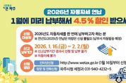 (누리일보) 시흥시는 납세자에게 절세 혜택을 제공하기 위해 1월 16일부터 2월 2일까지 2026년도분 자동차세 연납 신청을 받는다. 자동차세 연납 제도는 매년 6월과 12월 두 번에 걸쳐 납부하는 자동차세를 1월에 한 번에 미리 납부하면 세액의 5%를 할인해 주는 제도다. 자동차ㆍ이륜차ㆍ기계장비 등 자동차세 부과 대상이 되는 모든 차종이 해당한다. 3ㆍ6ㆍ9월에도 연납 신청이 가능하지만, 1월 납부 시 할인 혜택이 가장 크다. 기존에 자동차세 연납 제도를 이용하고 있는 납세자는 차량 변동 사항이 없으면 별도의 연납 신청 없이 1월 중에 송달받은 납부서로 납부하면 된다. 처음 연납 신청을 하거나 차량 변동이 있는 경우에는 위택스(인터넷ㆍ모바일 앱) 혹은 자동응답시스템을 이용하거나 시흥시청 시세관리과를 방문하거나 전화로 신청하면 된다. 연납 신청한 경우에는 납세고지서가 없어도 전국 모든 은행의 현금 자동입출금기(ATM)에서 납부할 수 있으며, 인터넷 지로와 위택스를 통해 금융기관을 직접 방문하지 않고도 편리하게 납부할 수 있다.