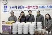 (누리일보) 수원시 영통구 원천동 행정복지센터는 원천동 주민자치회 주관으로 진행하는 '2025년 사랑의 반찬 꾸러미 나눔' 사업을 통해 관내 취약계층 100가구에 반찬 나눔을 실시했다고 25일 밝혔다. 주민자치회는 지역의 어려운 이웃을 돕기 위해 반찬을 직접 조리해 기초생활수급자, 차상위계층, 복지 사각지대 대상자 등 총 100가구에 전달했다. 1차 꾸러미는 2025년 6월 17일, 2차 꾸러미는 11월 25일에 각각 배부를 완료했다. 올해 꾸러미 구성은 주민자치회 위원들이 정성껏 준비한 제육볶음 등으로, 원천동 건강복지팀과의 연계를 통해 대상 가정에 직접 방문하여 전달하며 안부 확인도 함께 진행했다. 원천동은 이번 나눔 활동을 통해 소외된 이웃들의 정서적 고립감을 해소하고, 더 따뜻한 지역 공동체 조성에 기여할 것으로 기대하고 있다. 윤두원 원천동 주민자치회장은 “사랑의 꾸러미 나눔을 통해 관내 취약계층을 지원하고 이웃사랑 실천을 위한 좋은 기회가 됐기를 바란다”고 전했다.