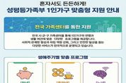 (누리일보) 성평등가족부는 “1인가구의 생활 안정과 사회적 관계망 형성을 지원하기 위해 전국 시·군·구 가족센터에서 맞춤형 프로그램을 운영한다”고 1일 밝혔다. 식생활·가사·건강관리와 교류·소통 등 일상 전반에서 어려움을 겪는 1인가구 사례가 증가함에 따라 연령별, 지역여건별 맞춤형 지원프로그램을 제공할 예정이다. 중장년의 사회적 고립감을 완화하기 위해 심리상담(1:1 또는 집단), 사회적 관계망 형성 지원을 위한 프로그램 등을 제공하고, 특히, 일상생활 속 자기돌봄 역량이 취약할 수 있는 중장년 1인가구 대상으로 요리 및 일상생활에 대한 교육 프로그램 등을 지원한다. 자립을 준비하는 청년을 대상으로 재무 기초교육, 정리 수납‧청소‧주거관리 교육 등을 통해 자립적 생활역량을 강화하는 프로그램을 지원하고, 1인가구 청년들간 고민과 어려움을 나눌수 있는 소통모임도 지원한다. 노년기 건강과 우울감 해소를 위해 건강관리, 치매예방 인지활동과 요가, 웃음치료, 영양 교육 프로그램을 실시하고, 노년 1인가구의 디지털 격차 해소를 위한 키오스크 및 스마트기기 실습 중심 교육을 제공한다. 1인가구의