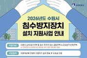 (누리일보) 수원특례시가 침수가 우려되는 주택·소규모 상가에 침수방지장치 설치를 지원한다. 지원 대상은 침수 이력·우려가 있는 공동주택·소규모 상가·단독주택이다. 우선순위는 ▲과거 침수 피해가 발생했던 건물(최근 피해 건물 우선 지원) ▲수원시 자연재해저감종합계획 내수재해 위험지구(10개소) 내 건물 ▲침수 피해 위험도가 높다고 우려되는 건물(주변 배수 여건 고려)이다. 침수방지장치 설치 지원사업 참여를 원하는 시민은 수원시 홈페이지 시정소식 게시판에서 ‘침수방지장치 설치 지원사업’을 검색해 신청 서식을 내려받아 작성한 후 방문(수원시청 본관 1층 재난대응과) 또는 전자우편으로 제출해야 한다. 지원 대상으로 선정된 신청자가 침수방지장치를 설치한 후 보조금을 신청해야 한다. 선정 결과는 개별 통보한다. 침수방지장치 설치비의 최대 80%를 지원한다. 지원 금액은 단독주택·소규모 상가는 최대 200만 원, 공동주택은 최대 1000만 원이다. 예산이 소진되면 사업이 조기에 마감될 수 있다.