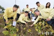 (누리일보) 전북특별자치도는 김제시 죽산면 일대에서 8월부터 10월까지 이어진 잦은 비로 벼와 논콩 재배 농가의 피해가 확산됨에 따라, 10월 26일 김관영 도지사를 비롯한 도의원과 관계 공무원들이 현장을 직접 방문해 피해 상황을 점검하고 신속한 복구 대책 마련에 나섰다고 밝혔다. 이번 현장 방문은 김관영 전북특별도지사를 비롯한 도의원, 도·김제시청 관계자 및 농가들 20여명이 참석한 가운데 벼 수발아 피해 및 논콩 피해 농가와 직접 소통하며 애로사항을 청취했다. 특히 농민들은 올해 8월 말부터 10월까지 이어진 잦은 비로 인해 지속된 강우로 인한 벼 도복 및 수발아 피해, 논콩의 잎·줄기 마름과 뿌리썩음 확산 등으로 어려움을 호소했으며, 도는 현장의 목소리를 반영한 실질적 지원책 마련에 나서기로 했다. 도는 현재 가을장마로 인한 피해 품목을 중심으로 현장조사를 실시해 피해 규모를 파악하고, 농림축산식품부에 ▲농업재해 인정 건의 ▲피해 벼 및 논콩 수매 확대 건의 ▲배수개선사업 추진 ▲김제시 ‘논콩 산업화’ 지원을 위해 ‘2026년 신규 농생명산업지구 예비사업자로 선정’ 등 구체적인 지원 방안을 마련하고 있다.