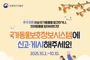 (누리일보) 추석 연휴 유실·유기동물을 발견하거나, 반려동물을 잃어버렸다면 국가동물보호정보시스템에 신고·게시해주세요! ■ 추석 연휴 유실·유기동물 구조 통합 신고시스템 운영으로 신속한 온라인 신고·접수 가능 · 기간: 2025.10.2.(목)~10.10.(금) · 신고 게시: 국가동물보호정보시스템 누리집 팝업창 ■ 유실·유기동물 온라인 신고·접수 방법 ① 유실·유기동물을 발견한 경우 국가동물보호 정보시스템 '동물발견' 배너 클릭 → 발견장소, 사진, 개체 특징 등 제보 등록 → 해당 지자체 보호센터 정보제공 → 지자체 동물보호센터 신속 대응 ② 반려동물을 분실한 경우 국가동물보호 정보시스템 '동물분실' 배너 클릭 → 반려동물 분실장소, 일시, 사진 등 정보 등록 → 시민 간 발견 정보 공유(댓글 창 활성화) → 필요시 분실신고 병행(등록동물 정보 변경) 유실·유기동물 구조 통합신고로 보호자를 빠르게 찾아드리겠습니다