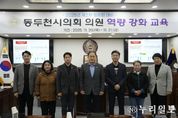 (누리일보) 동두천시의회는 지난 20일부터 21일까지 이틀간 본회의장에서 의원 및 의회사무과 직원을 대상으로 2025년 제2차 정례회 대비 역량 강화 교육을 실시했다. 이번 교육은 전문적인 예산안 심사와 효과적인 의정활동을 제고하고자 마련된 자리로, 1일차에는 서울시에서 지방의원으로 6선을 역임, 현재 부산광역시 부산진구의회 입법고문으로 활동 중인 한국산업기술원 좋은정책연구소 소장 김용석 교수를 초빙하여 예산안 심사 기법 교육이 진행됐다. 2일차에는 샤인앤컴퍼니 미디어센터 오수화 팀장이 강사로 참여하여 SNS를 활용한 소통 활성화 방안 등을 중심으로 강의가 진행됐다. 김승호 의장은 “이번 교육은 2025년 제2차 정례회를 전문적이고 체계적으로 준비하기 위한 자리였다.”며, “앞으로도 의원들의 역량 강화와 시민과의 소통 확대를 위해 지속적으로 노력하겠다.”라고 밝혔다.