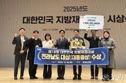 (누리일보) 전라남도는 16일 정부세종청사에서 열린 행정안전부의 2025년 제18회 대한민국 지방재정대상 시상식에서 ‘통합재정운영평가’ 분야 대상(대통령상)을 받아, 재정인센티브 10억 원을 확보했다고 밝혔다. 통합재정운영평가는 국가재정운용 기조에 부합하고 지방재정·세제 핵심 성과를 대표할 수입 증대, 지출 효율화, 지방재정 집행, 재정계획과 관리 등 4개 지표 실적을 바탕으로 종합적인 재정운용 역량이 우수한 자치단체를 선정하는 것이다. 전남도는 어려운 재정 여건에도 도정 최우선 과제를 민생안정에 두고 1천185억 원 규모의 민생경제 종합대책을 추진하는 등 지역경제 활력 제고를 위한 확장적 예산 편성과, 국민주권정부의 경기 진작과 민생 안정 기조에 맞춰 발빠르게 추경을 편성하고, 민생회복 소비쿠폰·지역사랑상품권 예산을 반영하는 등 적극적인 재정운용을 펼쳤다. 또한 2025년 상반기 재정집행 최우수 지자체 선정과 안정적 채무 관리 등 지방재정을 탄탄하게 운영해 재정집행·관리 부분에서 높은 평가를 받았다. 윤진호 전남도 행정부지사 직무대리는 “최근 지방재정 위기에서도 전남도가 적극적으로 추진한 정책이