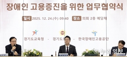 (누리일보) 경기도교육청이 24일 경기도의회 예담채에서 경기도의회(의장 김진경), 한국장애인고용공단(이사장 이종성)과 함께 장애인 고용증진을 위한 업무협약을 체결했다. 이번 협약은 ‘장애인고용의무 이행’을 위해 3자 간 상호신뢰를 바탕으로 장애인 일자리를 지속적으로 창출하고, 사회적 가치를 실현하기 위한 협력의 일환으로 마련됐다. 협약식에는 임태희 교육감, 김진경 의장, 이종성 이사장을 비롯해 각 기관의 주요 관계자가 참석했다. 주요 협약내용은 ▲장애인 일자리 창출을 위한 직무조사·발굴 ▲장애인 교원 임용 준비반 참여 확대를 위한 연계 강화 ▲장애인 시간선택제 임기제공무원 제도 도입 운영 ▲각급 학교 수요 물품, 용역 등 장애인표준사업장 연계고용 활성화 ▲특수교육대상자 현장실습 인정 사업 범위 확대 및 장애인에 대한 직장 내 인식개선 실천 등이다. 각 기관은 이번 업무협약으로 장애인 고용증진을 통한 협력 체계를 구축하고, 장애인 고용부담금 감면을 위해 긴밀히 소통할 방침이다. 또한 앞으로 협력 사항을 원활하게 추진하기 위해 실무협의체 구성과 운영 등 후속 실행체계를 구축할 계획이다. &