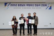 (누리일보) 충남역사문화연구원은 4일 충청남도 보훈관(홍성군 홍북읍 홍예공원로 65)에서 2025년 충청남도 무형유산 전승자 간담회를 개최했다. 이번 간담회는 충청남도 지정 무형유산의 체계적인 전승 기반을 마련하고, 현장의 다양한 의견을 수렴하기 위해 마련됐다. 충청남도는 1972년 '한산세모시짜기'를 첫 번째 도 지정 무형유산으로 지정한 이후, 2025년 현재 총 57종목의 무형유산을 지정하여 전승·보존해오고 있다. 이날 간담회에서는 오랜 기간 무형유산 전승에 헌신한 공로를 인정하여 명예보유자 2명과 전 무형유산연합회 회장 1명 등 총 3명에게 표창장이 수여됐다. 간담회에는 보유자, 보존회장, 전승교육사 등 전승자 80여 명과 무형유산 전문가가 참석했다. △무형유산 전승자 지원금 사용 방법(김수현 국가유산청 사무관) △충청남도 무형유산 지정 현황(정래진 충남역사문화연구원 책임연구원) 등에 대한 설명이 이루어졌으며, 이어 전승자들과의 질의응답을 통해 현장의 애로사항을 청취하는 시간을 가졌다. 장기승 충남역사문화연구원장은 “충청남도 지정 무형유산 57종목의 보존과 전승체계