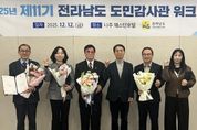 (누리일보) 전라남도는 ‘2025 제11기 전라남도 도민감사관 역량강화 워크숍’을 최근 열어 도민이 직접 참여하는 청렴·감사 활동을 강화하고 현장 중심의 감사 역량을 높였다고 밝혔다. 워크숍은 시군 공무원 100명이 참석한 가운데 우수 도민감사관 표창, 청렴특강, 질의응답 순으로 진행됐다. 한 해 동안 활동한 도민감사관들이 한자리에 모여 성과를 공유하고 실무 역량을 높이는 의미 있는 시간이 됐다. 도민감사관 제도는 2003년 명예감사관 제도로 시작해 2018년 도민참여형 감사제도 강화를 위해 명칭을 도민감사관으로 변경했다. 현재까지 총 863명의 도민감사관이 활동하며 감사행정에 참여하고 있다. 워크숍에서 도지사 표창을 받은 7명의 우수 도민감사관은 시군 공사와 사업 과정에서의 문제점·불편사항 제보, 다른 지역의 우수 사례 제안, 시군 종합감사 과정에서의 간담회 소통 등을 통해 감사행정의 신뢰를 높이고 도정 발전에 기여한 공로를 인정받았다. 특강에서는 ‘미래사회의 경쟁력, 청렴’을 주제로 디지털 전환 시대의 청렴 가치와 공공부문 투명성 강화 전략, 도민 참여 기반의 부패 예방
